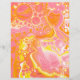 Coral, yellow and orange pour painting cells marble like swirls abstract art.