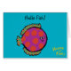 From her book "Hooray for Fish" published by Candlewick Press, this Lucy Cousins illustration shows an adorable polka-dot fish with a green-and-orange striped tail. The friendly sea creature is smiling cheerfully and looking cute with his large red spots. Children will love this colourful and friendly-looking fish.
