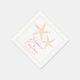 Orange and coral pink starfish on napkins that can be personalised with bride and groom names and wedding date. Our starfish collection was designed to complement a beachside wedding and incorporate coastal motifs WITHOUT overpowering the simple and sophisticated elegance you are looking to convey at your reception, rehearsal dinner, bridal shower, or cocktail hour.