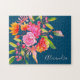 Pink and Orange Watercolor Flowers Navy Name Jigsaw Puzzle