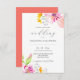 Save on paper and money with these bright colour wedding invitations featuring a watercolor floral design in shades of pink and orange, complete with a QR code for easy guest access. This simple yet classy design combines elegant calligraphy typography with a classic font, framed by a romantic border of peach, pink, and orange florals. The card reverses to a matching orange background, featuring your wedding QR code and space for additional details.