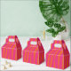 Vibrant orange and hot pink zebra patterned favour boxes.