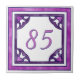 A hand drawn pink and purple frame around a pink house number with dark blue outlines and a pattern in the corners on a white background.