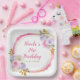 Beautiful birthday party plate with a bright pink, purple and gold faux glitter frame with floral flower arrangements. Perfect for a birthday party. The words can be changed to suit your own details or requirements