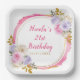 Pink and Purple Elegant Flowers Birthday Party Paper Plate