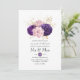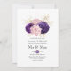 Elegant pink and purple flower wedding invitation with faux gold foil accents and a vintage calligraphy reverse customisable to your event specifics.