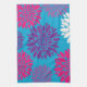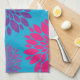 Pink and Purple Flowers on Teal Blue Tea Towel