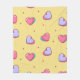 This design features a pink and purple heart pattern on a yellow background.