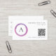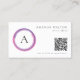 Modern business card featuring a simple yet professional design with your monogram inside of a pink and purple circle. Use the template to generate a QR code.