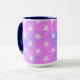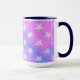 This pretty, colourful mug features my original art of stars with a distressed pink, purple and blue tonal style. It has navy blue inside and on the handle, which complements the colours tones of the stars.