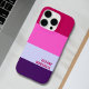 A trendy iPhone 16 Pro case featuring a pink and purple stripes pattern. Stylish and modern, this personalised accessory adds a unique touch while keeping your device protected.