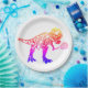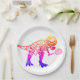 Pink and Purple T-Rex Dinosaur Tennis Player Paper Plate