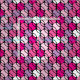 Pink, purple and white tennis balls pattern on black background.