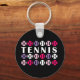 The round keychain is designed to complement the vibrant and visually striking image described earlier, featuring pink and purple tennis balls arranged in four rows horizontally on a black background. This round keychain is a small, durable accessory that serves both a practical and decorative purpose. It is made from high-quality acrylic material, ensuring its longevity and resilience to wear and tear. The front of the keychain showcases the lively pattern of pink and purple tennis balls against the deep black background.