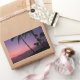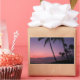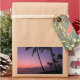 Rectangular photo sticker of a pink and purple sky during a sunset at a beach with black silhouette palm trees on the tropical island of Maui, Hawaii.