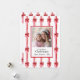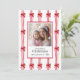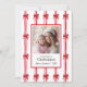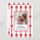 Lovely pink and red Christmas bows and long, dangly ribbons decorate this flat holiday card. They are very cute and even a bit girly. They have a vintage watercolor origin but are modern in their look. This card accepts your square personal photo in a delightful look. The salutation is "A Very Merry Christmas". Be sure to edit the "from" script on the front with your own names. On the back, the paragraph is an example and can be replaced with your own words. Do change the family names and year below.