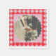 Add a sweet pop of retro charm to your celebration with this pink and red wedding napkin, designed to impress! The bold chequerboard border in rich red and playful pink frames your favourite couple photo, highlighted by a scalloped edge detail. The word “Cheers!” adds the perfect festive touch, with customisable text for names and your special date.