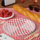 Pink and red chequered 9" paper plate