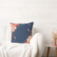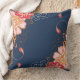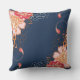 Pink and Red Flowers on Blue Throw Pillow