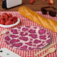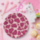 Pink and red leopard print paper plate, featuring an animal print pattern.
