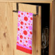Pink and Red Retro Circles and Polka Dots on Pink Tea Towel