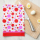 Pink and Red Retro Circles and Polka Dots Tea Towel