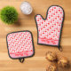 Pink and Red Valentine Heart Pattern Custom Text Oven Mitt & Pot Holder Set