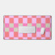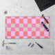 Pink and Sand Beige Retro Chequerboard Pattern Desk Mat