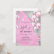 Pink and Silver Birthday Party Invitation featuring a bunch of glittery, sparkly balloons and ribbons.