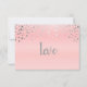 Wedding RSVP Card. Featuring a modern wedding styled rsvp in a pink background with silver confetti dots and the word love in bold print. 100% Customisable. Ready to Fill in the box(es) or Click on the CUSTOMIZE button to add, move, delete, resize or change any of the font or graphics. Made with high resolution vector and/or digital graphics for a professional print. NOTE: (THIS IS A PRINT. All zazzle product designs are "prints" unless otherwise stated under "About This Product" area) The design will be printed EXACTLY like you see it on the screen and on the product...so please make sure when you do your changes on the resizing of any of the graphics or text that it fits in the areas correctly and that your spelling and wording is how you like it to be in size, colour and font. Thank you for the support and stopping by my store - LetsUDesignIt