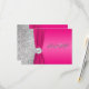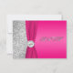 ****Please note that the ribbon and jewels are PRINTED ON images, and are not real. This stunning hot pink and silver grey floral damask Quinceanera RSVP card has a PRINTED on fuchsia pink ribbon and a silver and crystals jewelled medallion with a tiara or crown on it. It matches the Quinceanera invitation shown below. The text and paper choices are fully customisable. If you require any matching items, please email your request to niteowlstudio@gmail.com.