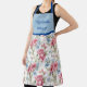 Pink and Sky Blue Floral and Polka Dots - This lovely apron features a floral pattern of pink petunias and blue daisy like flowers. The top portion of the apron is sky blue with white polka dots and it is completely customisable so you can change it to say whatever you like. More coordinating items are available in our shop too.