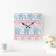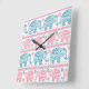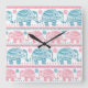 Pink And Teal Ethnic Elephant Pattern Square Wall Clock