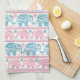 Pink And Teal Ethnic Elephant Pattern Tea Towel