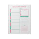 This is a perfect planner for busy families... easy to use and well organized. Each page rips off after use and the new page is ready for the next week. Clear print and personal monogram is fun.