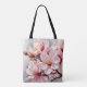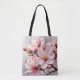 Large, lush pink and white apricot blossoms on a soft grey background create a beautiful tote bag that's perfect for home, the office, or school.