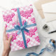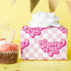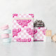 Hot pink and pink retro font style "Groovy One" typography against a light pink and white chequerboard pattern wrapping paper.