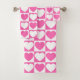 Pink and White Chequered Pattern With Hearts Bath Towel Set