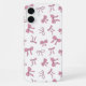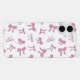 Pink bows with black outlines on a white background make up this cute phone case. The design features different types of bows in a trendy, coquette pattern.