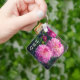 Pink and White Dahlia Flower Initials Key Ring