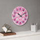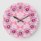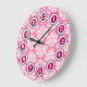 Pink and white is always appropriate for a girls room, a feminine washroom, or a boudoir. The pattern on this wall clock is rich damask style, the numbers surrounded by a deep berry coloured circle for easy reading.