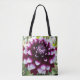 Your choice of stylish tote bag or crossbody bag with an all-over print that features the photo image of a gorgeous, dark pink and white Decorative Dahlia flower. A lovely, floral design! Select your tote bag size and style.
