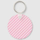 Pink and White Diagonal Stripes Keychain