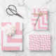 Pink and White Different Sizes Diagonal Chevron Wrapping Paper Sheet