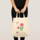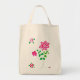 A natural-colour grocery tote bag with a pretty pink and green floral design from a handpainted paper collage by Judy Adamson.
