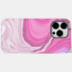 Pink and white with a touch of purple faux marble fluid art phone case.