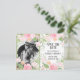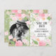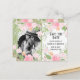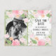 Blush pink and light pink roses create a romantic border. Your couple's photo is to the left and the Save the Date request is the right. Your photo is framed by light green. the back of the postcard has the same pink floral border, but the entire back is green. Easy to customise with your own Save the Date info.