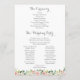 Our pink and white flower wedding programs have wording that is completely customisable. Use Zazzle's "Personalise this template" tool to enter your wedding ceremony information. If you need to change the placement of the text boxes, font colour or size just click on the "Click to customise further" button to change those things. Be sure to check out our large selection of coordinating items by browsing the Pink, White, and Green Floral Wedding collection!