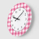 Pink And White Gingham Check Pattern Large Clock