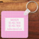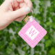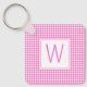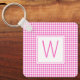 This cute monogrammed keychain features a gingham plaid in classic shades of bright pink and white. Personalise the monogram on the front with your choice of initial and text on the back.